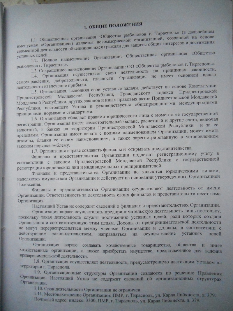 ОО'' Общество рыболовов'' г.Тирасполь